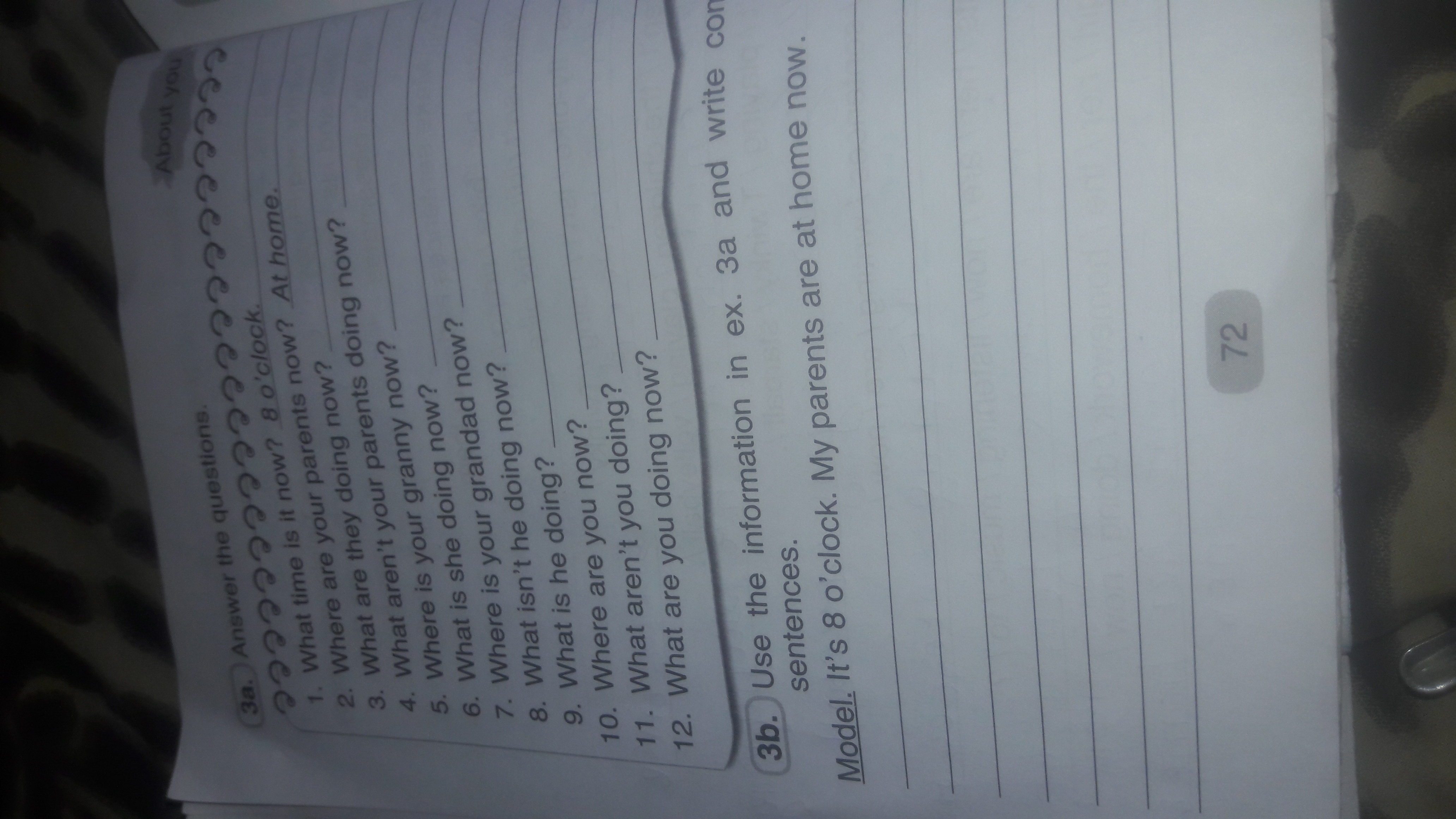 It's 8 o'clock. My parents are at home. They aren't sleeping, but they are watching TV now.