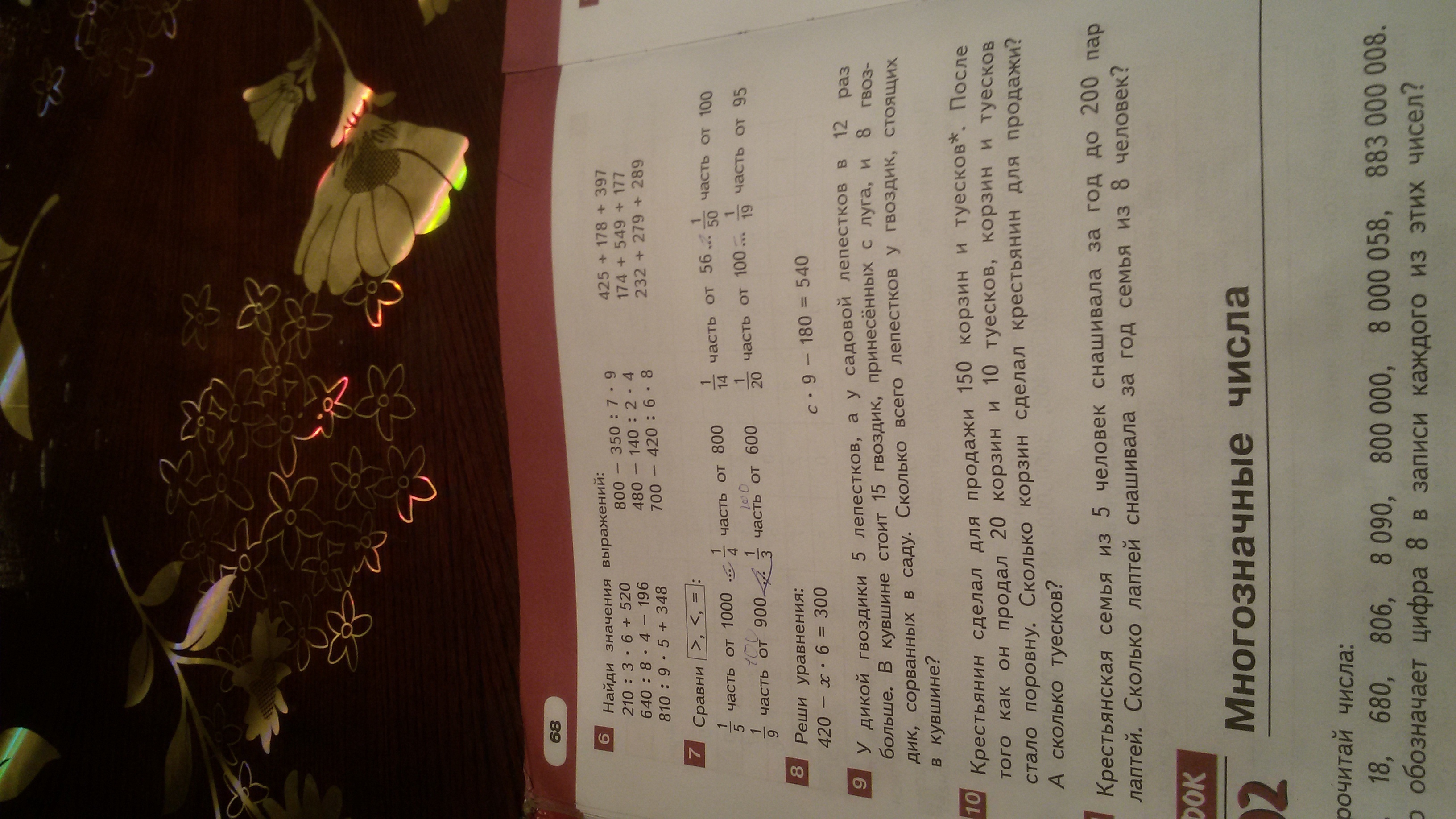 сравни{<>=]: 1/5 частьот 1000и одна четвёртая часть от 800 задание седьмая