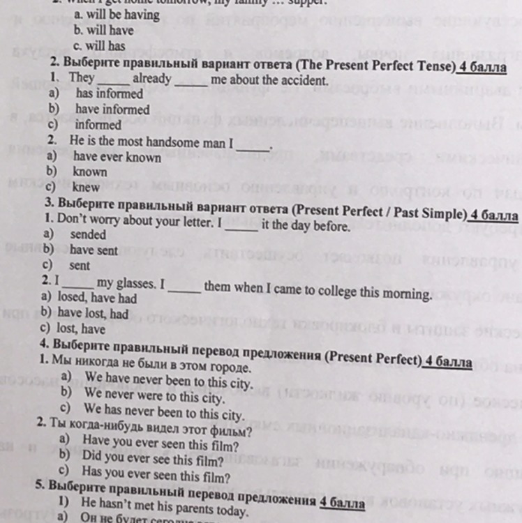 4 задание (в present perfect):