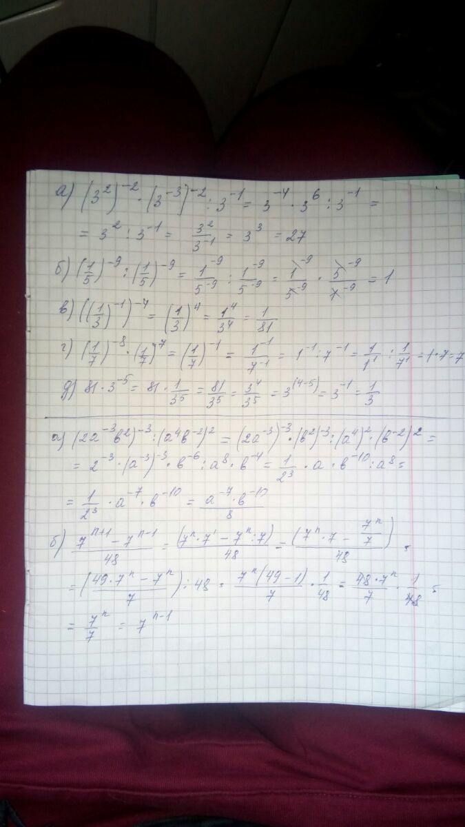 a)3^-4*3^6/3^-1=3^2/3^-1=3^3=27