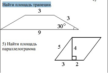 S(трапеции)=(1 Основание + 2 Основание)*h/2