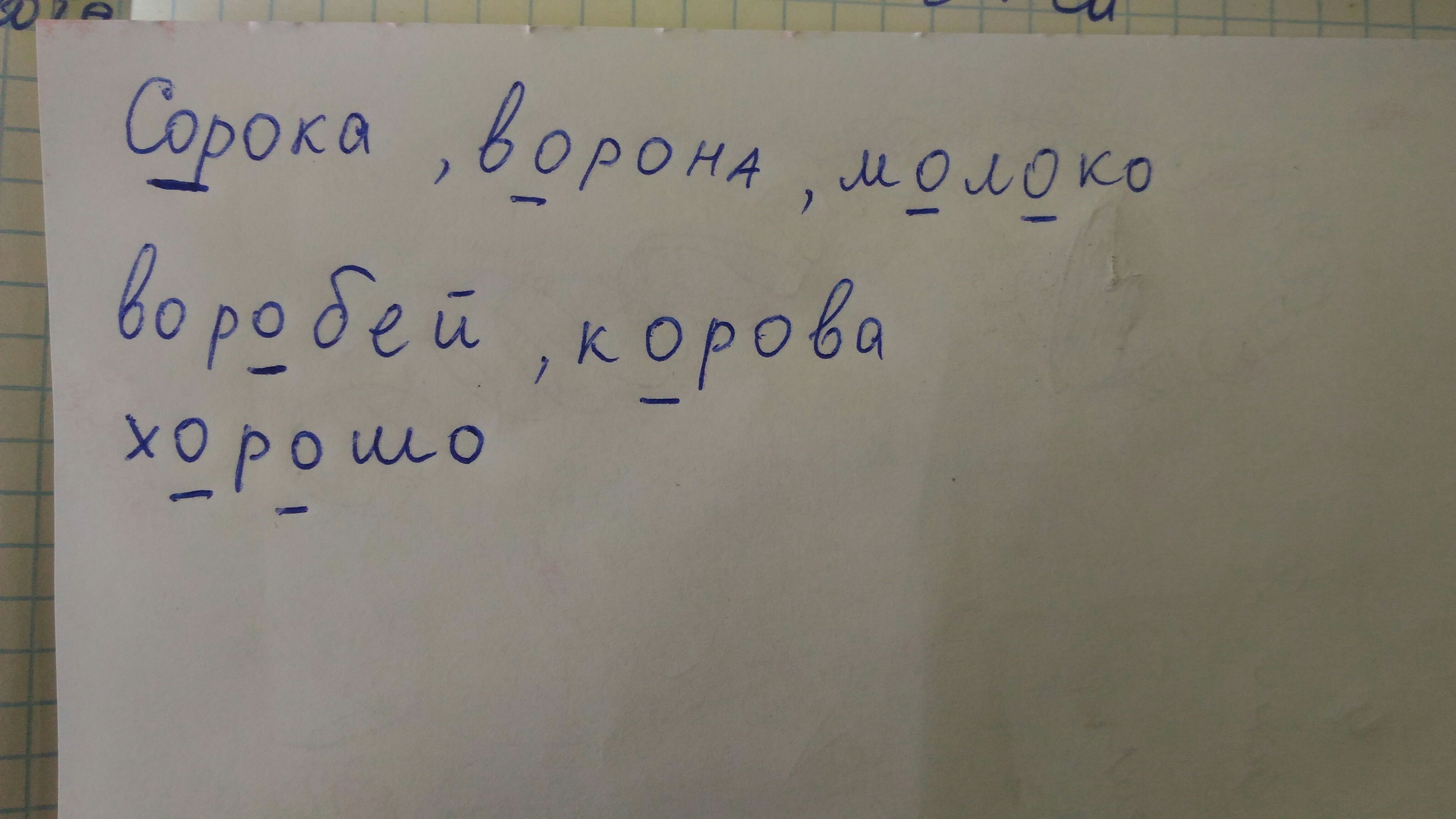 пАльто.,сОрока, вОрона,дЕревня, бЕрёза,рАбота,пЕнал,мОлОко, вОробей,кОрова, хОрошо