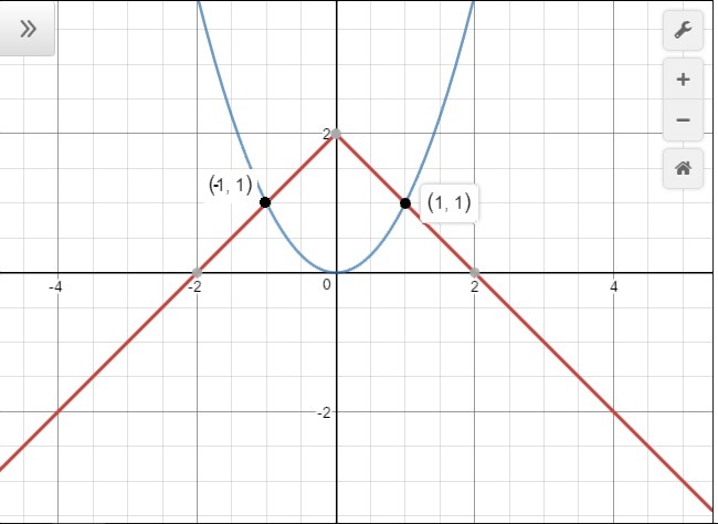 Графики пересекаются в двух точках: (-1;1) и (1;1)