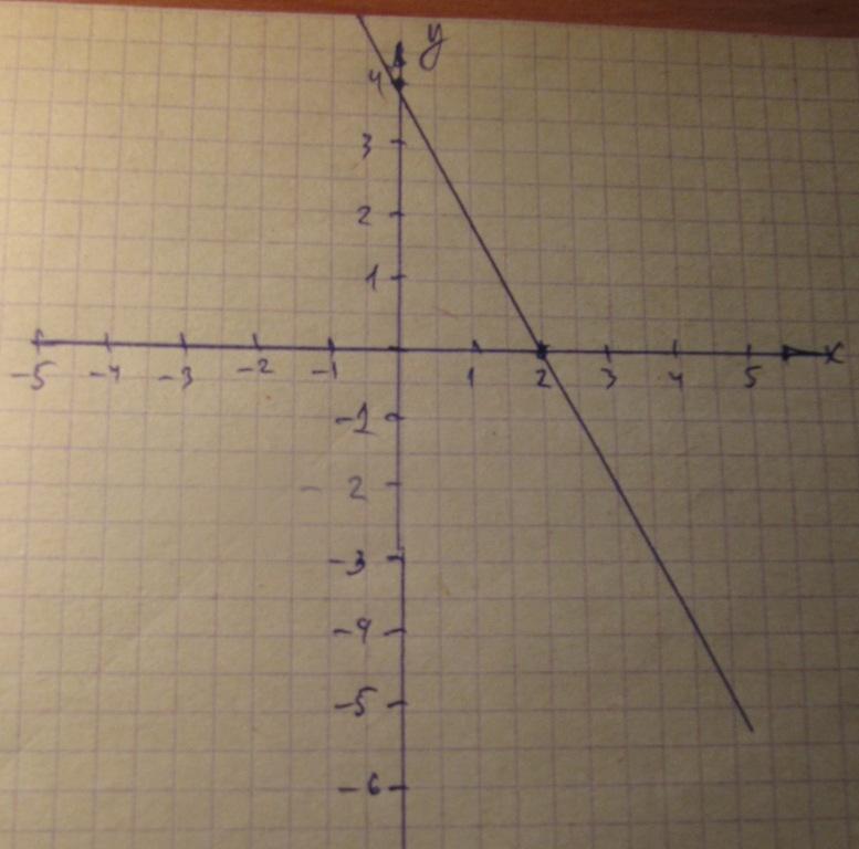 Функция - прямая линия, проходит через 2 точки (0; 4), (2;0).
