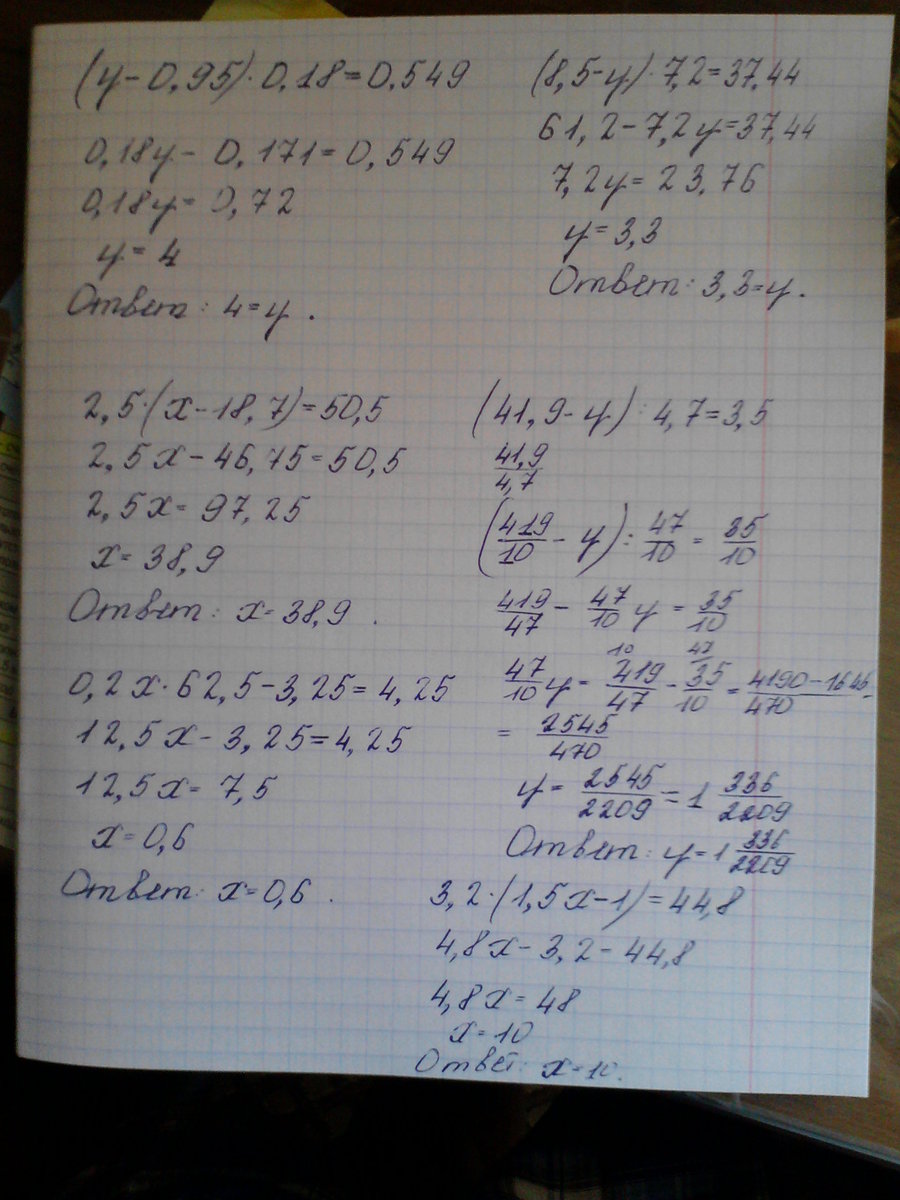 0,18у-0,171 = 0,549; 0,18у =0,549 + 0,171; 0,18у =0,72; у = 4