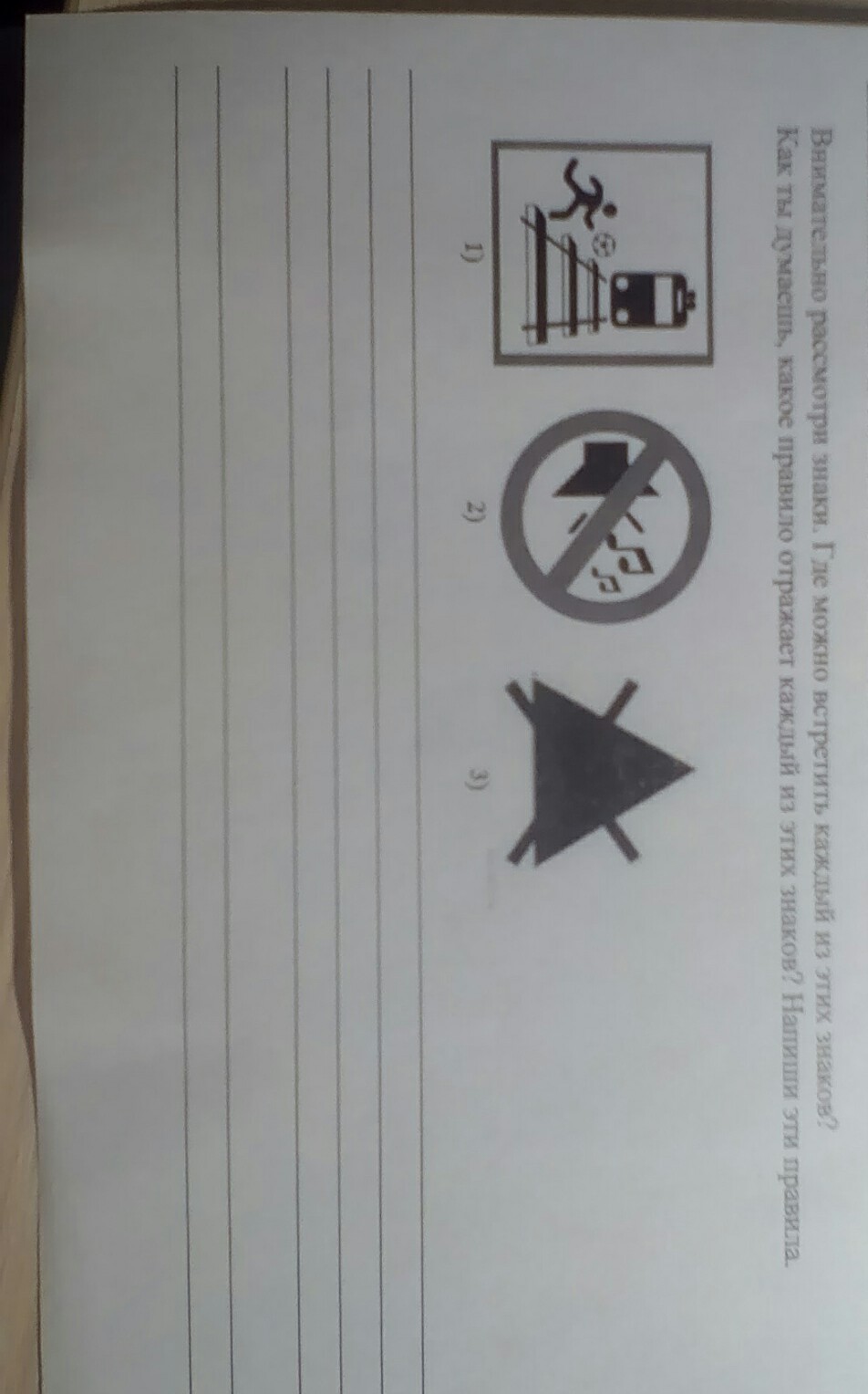 внимательно рассмотри знаки. Где можно встретить каждый из этих знаков? Как ты думаешь, какое правило отражает каждый из этих знаков? Напиши эти правила.