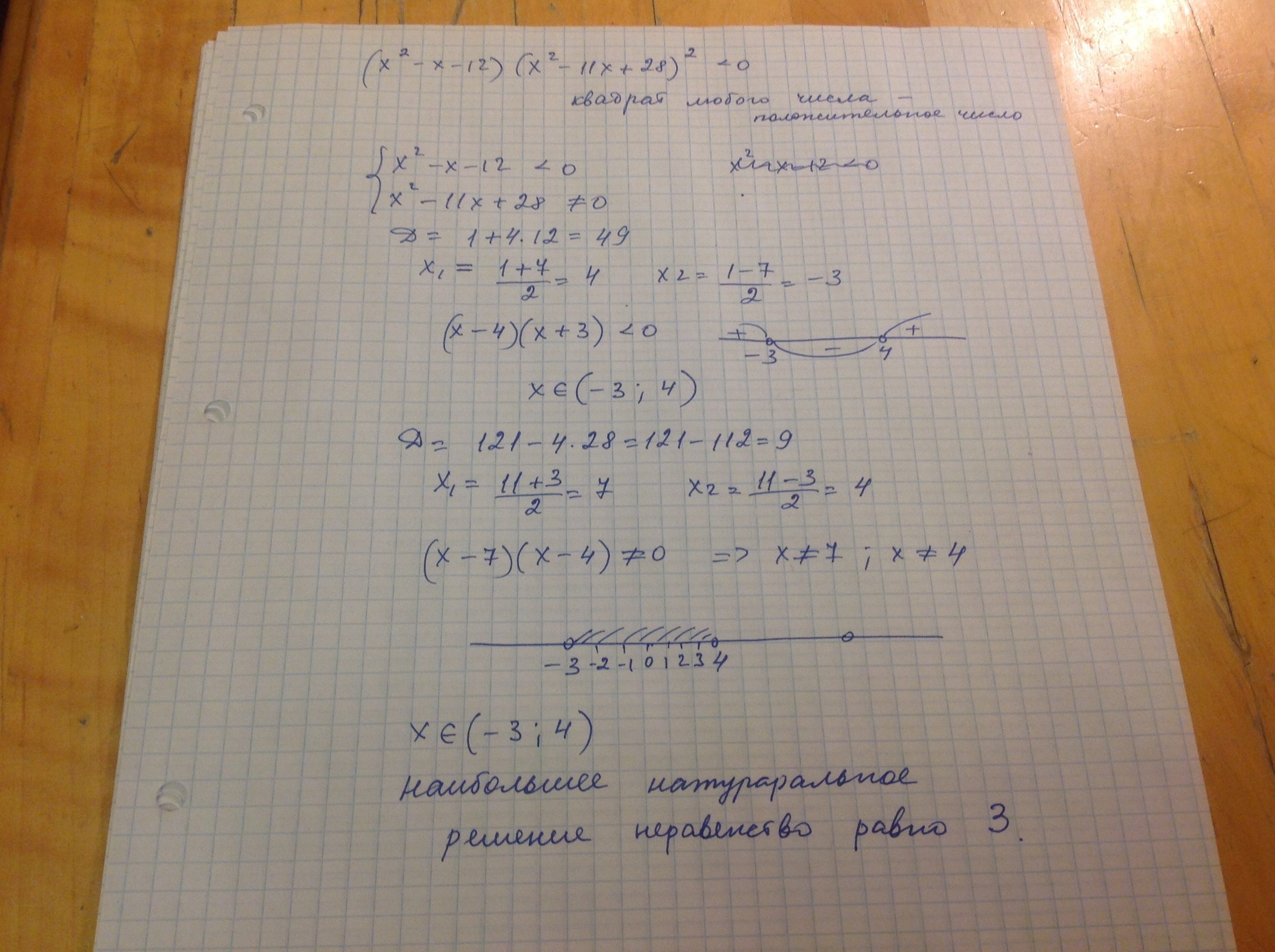 2)Найдите наибольшее натуральное решение неравества (x^2-x-12)(x^2-11x+28)^2 <0