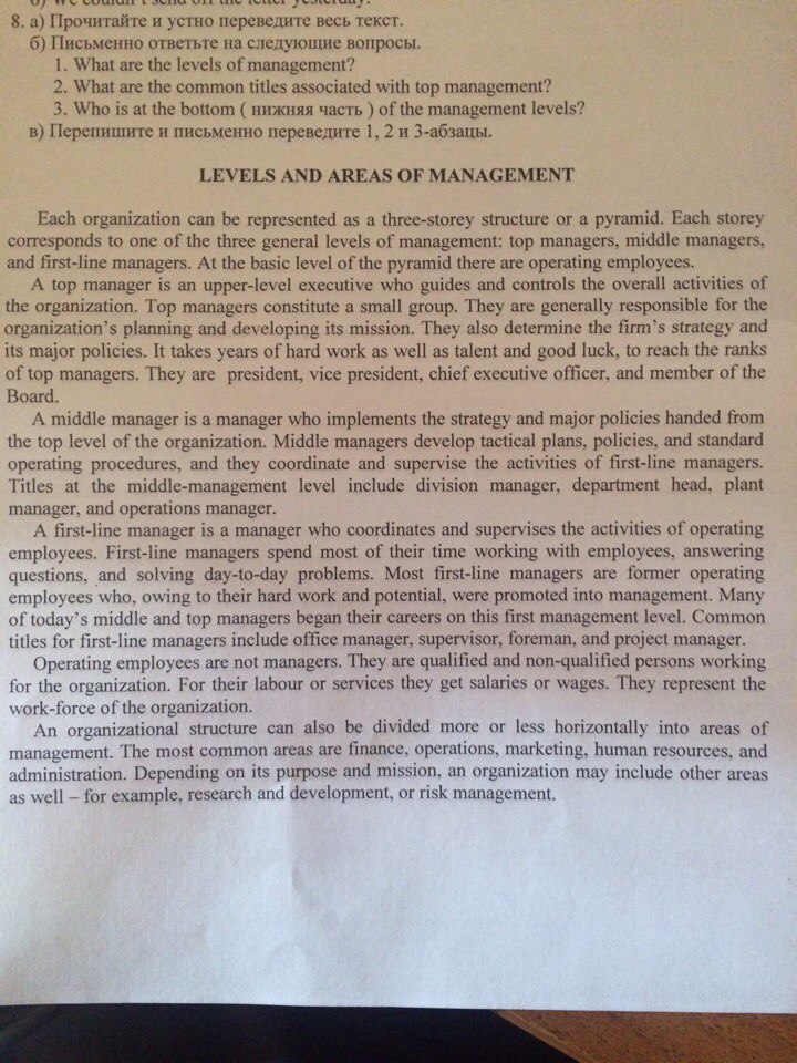 Уровни и области Менеджмента.