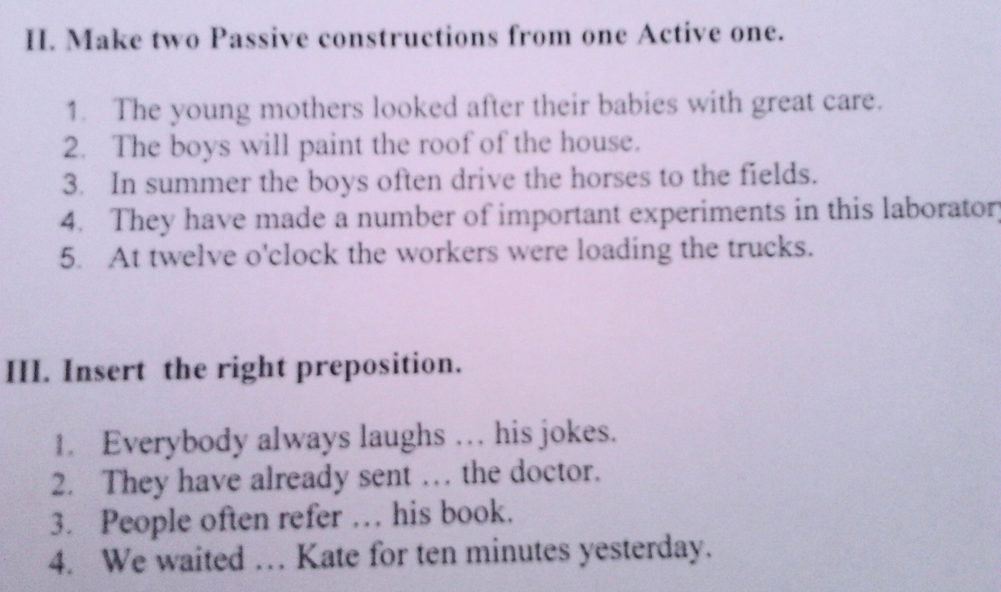 второе с предлогами: at, for, to, for