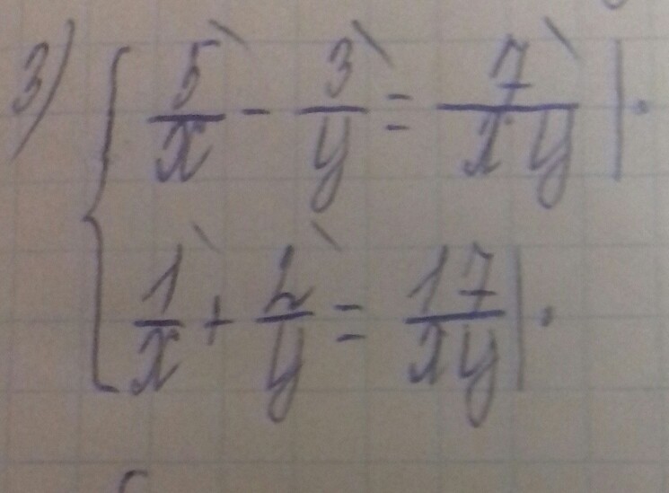5/x-3/y=7/xy /*xy 1/x+2/y=17/xy /*xy