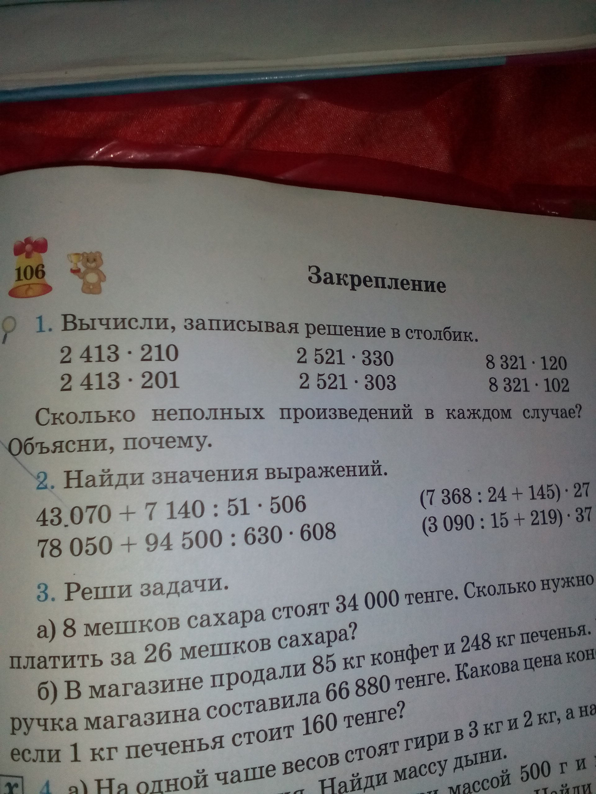 Упр 1. Вычисли, записывая решение в столбик Сколько неполных произведений в каждом случае? Обьясни, почему
