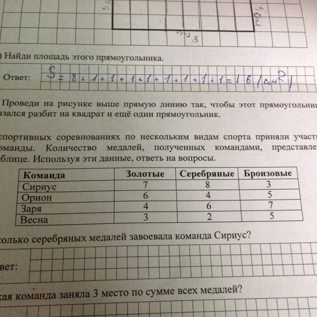 В спортивных соревнованиях по несколько видам спорта приняли участие 4 команды . Количество медалей ,полученных командами представлено в таблице . Используя эти данные ответь на вопрос