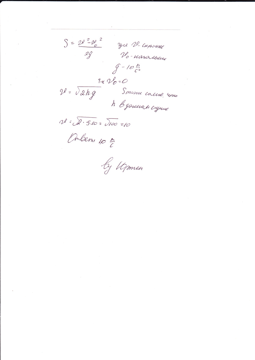 мяч брошен с земли на высоту 5 м., найти модуль скорости с которой мяч достигает с земли (g=10мс2 в квадрате