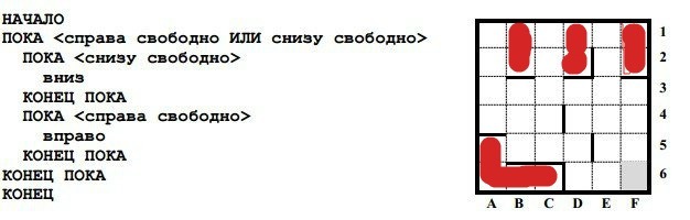 Кстати, можно просто добавить под движение вправо: "ПОКА <внизу свободно> вниз КОНЕЦ ПОКА ПОКА <слева свободно> влево КОНЕЦ ПОКА" и тогда мы