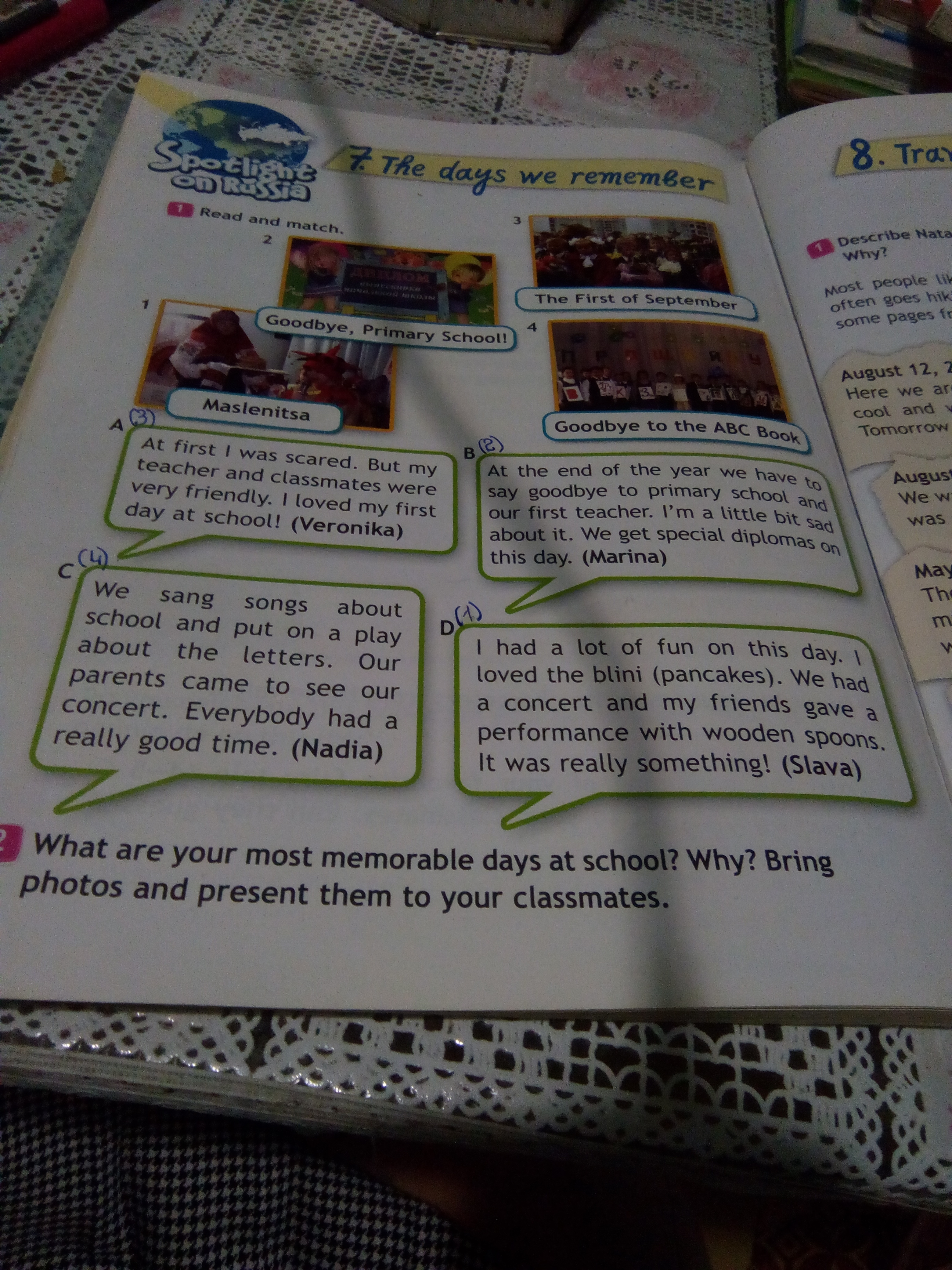 B) Primary school-начальная школа first-первый sad-грустный special diplomas-специальный диплом