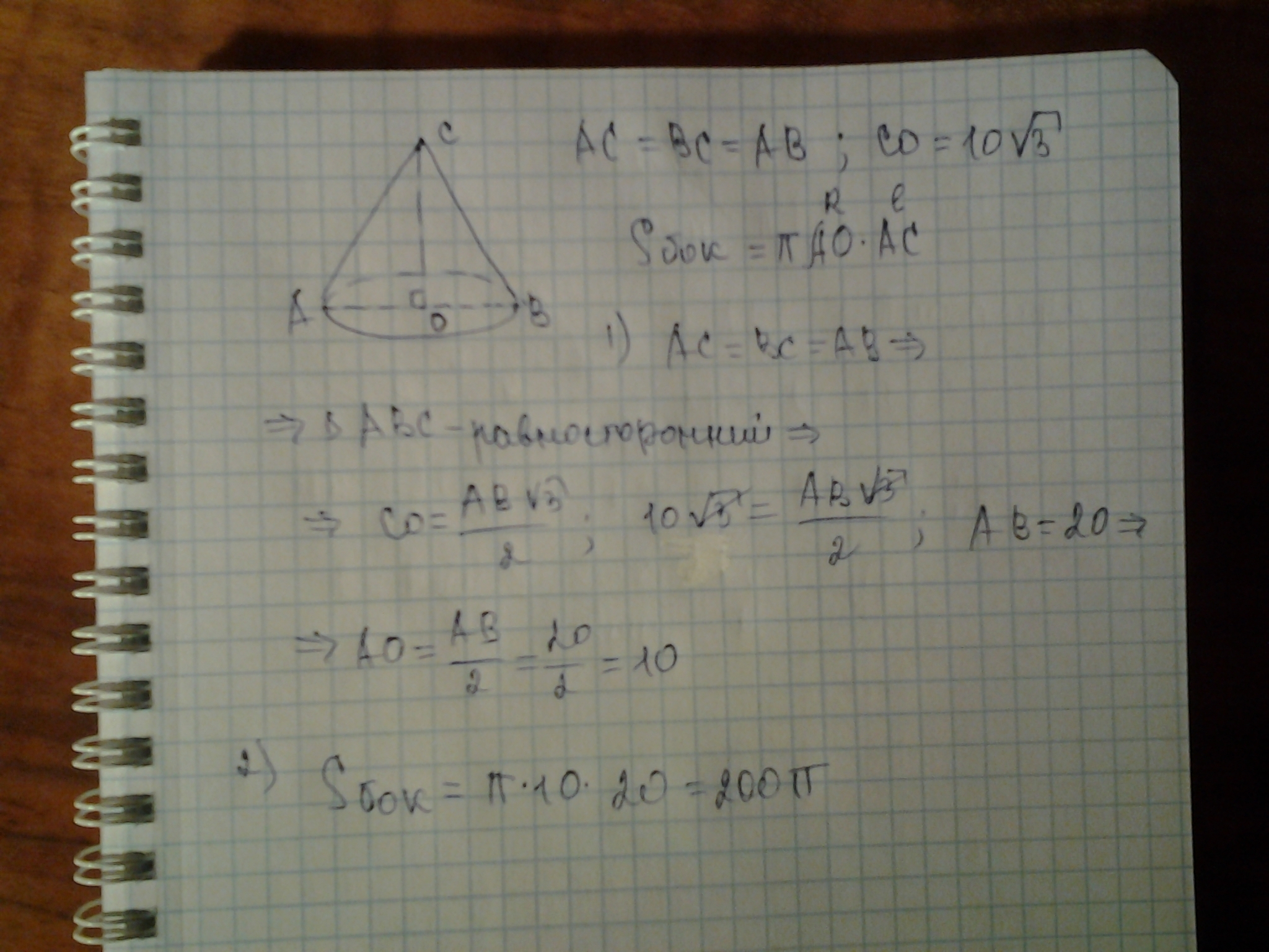 Применены : формула площади боковой поверхности конуса, свойства правильного треугольника