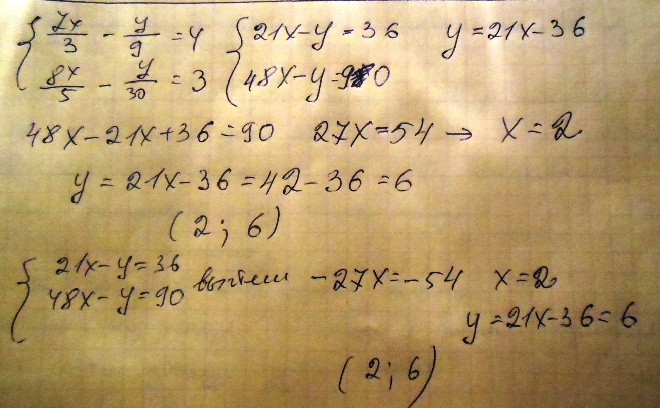 внизу решение этой же системы методом сложения (вычитания), здесь это удобнее