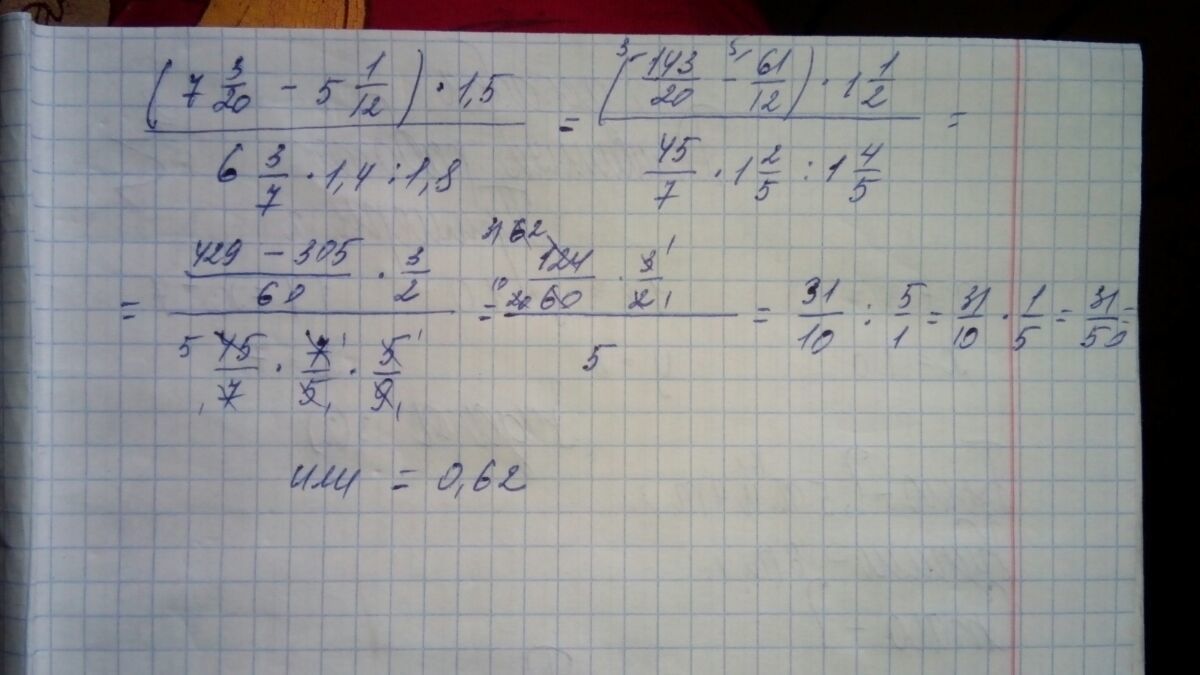1) (7 целых 3/20 - 5 целых 1/12) *1,5