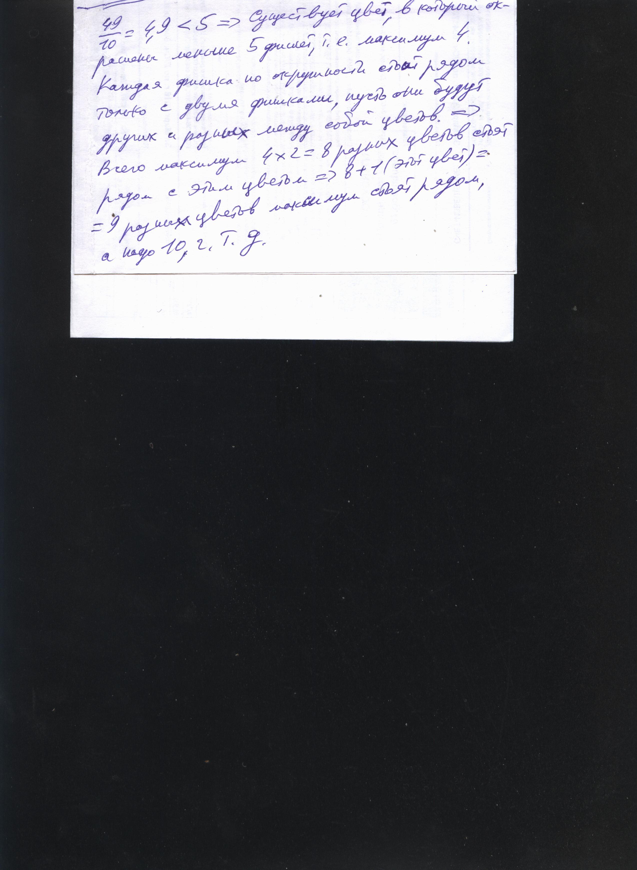Петя расставил по окружности 49 фишек, раскрашенных в 10 разных цветов. Докажите, что найдутся такие два разных цвета, что фишки этих цветов не стоят рядом.