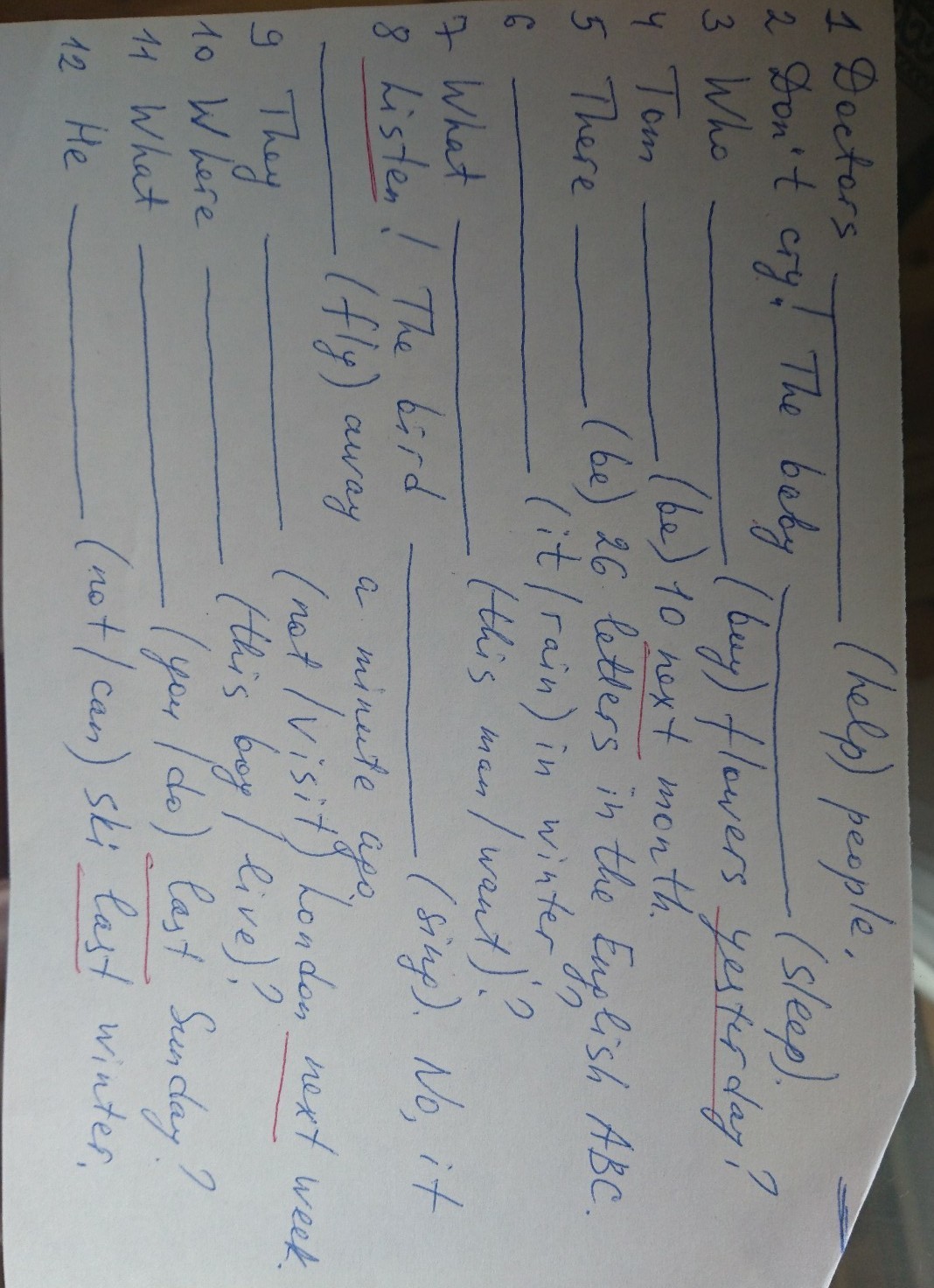 8. Listen! The bird is singing. No, it fly away a minute ago