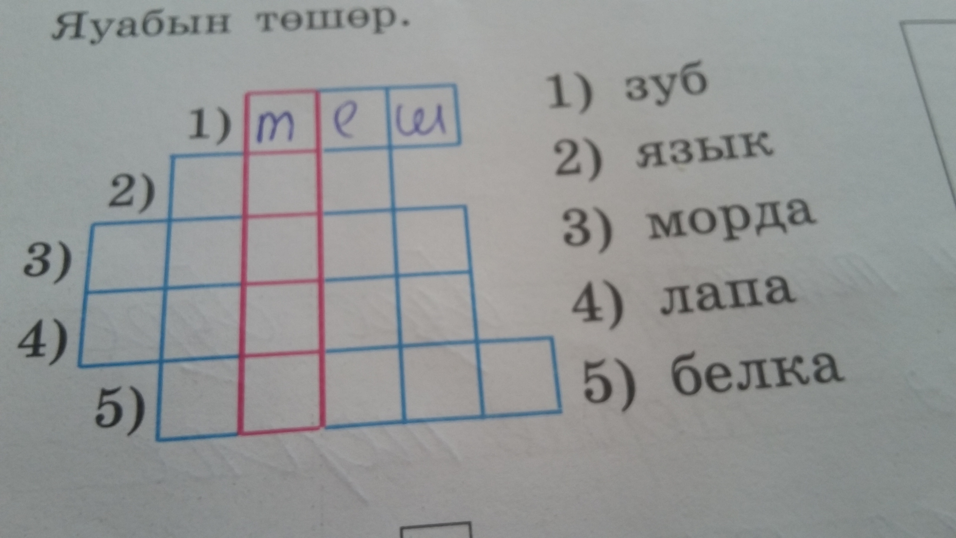 1теш, 2тел, 3томшоғо, 4тәпәй, 5аҡһа