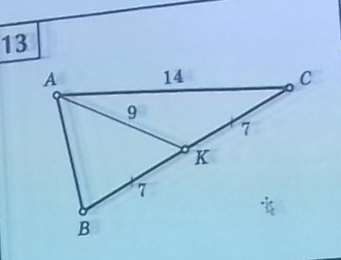 Дано: ∆АВС, АС=14, АК- биссектриса, АК=9см, ВК=КС