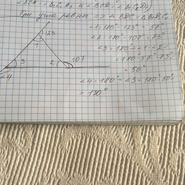 Два внешних угла треугольника равны 107 градусов и 123 градуса. Найдите внешний третий угол.( Если можно, с объяснениями)