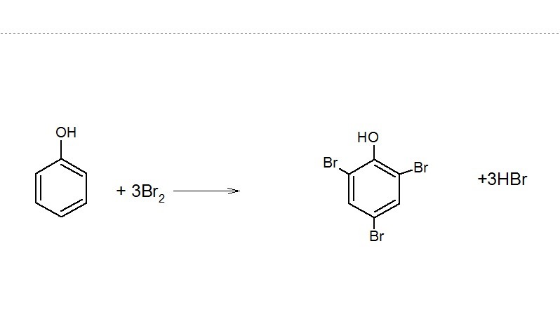 С₆H₅OH + 3Br₂ = C₆H₂(OH)Br₃↓ + 3HBr