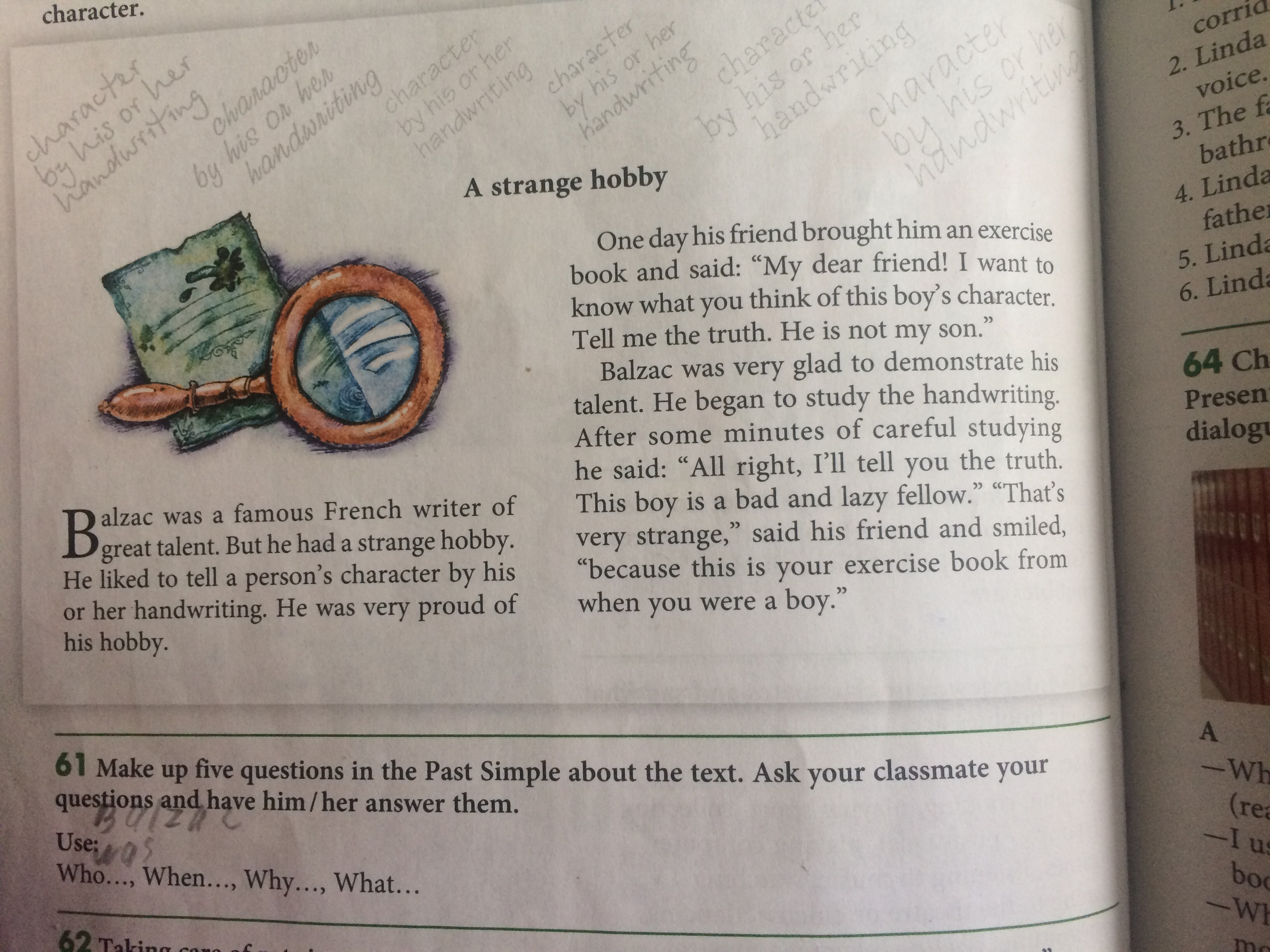 Who was a famous French writer of great talent? What strange habit had Balzac? Was he proud about his ability? Who brought Balzac an exercise book? Whose book his friend brought to him?