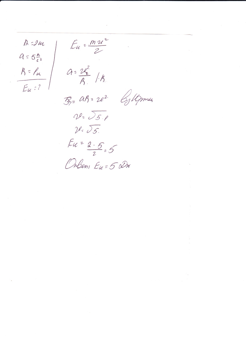 Чому дорівнює кінематичка енергія тіла масою 2кг, що обертається з доцентровим прискоренням 5м/с2 по колу радіусом 1м?