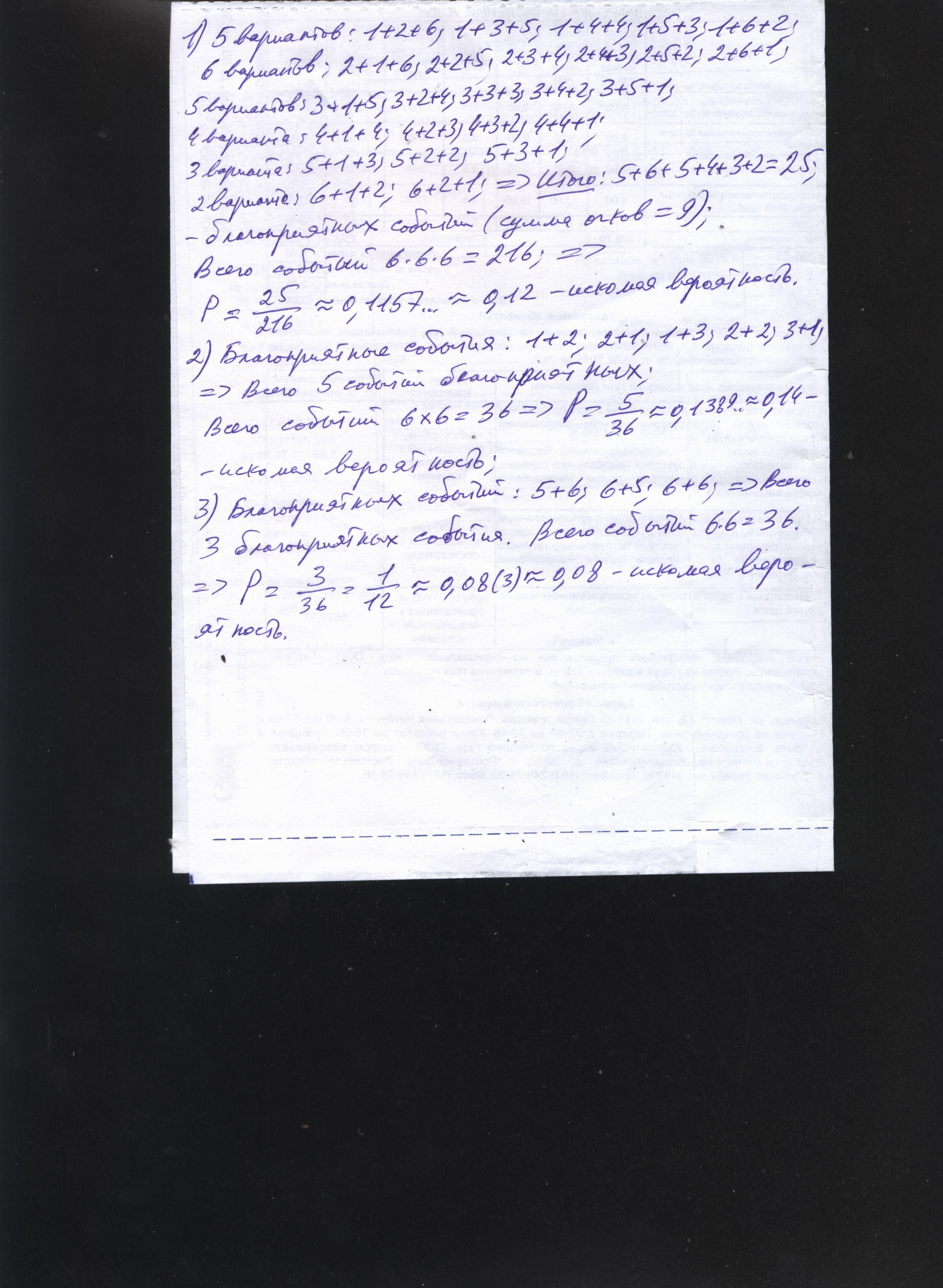 1. В случайном эксперименте бросают три игральные кости. Найдите вероятность того, что в сумме выпадет 9 очков. Результат округлите до сотых.