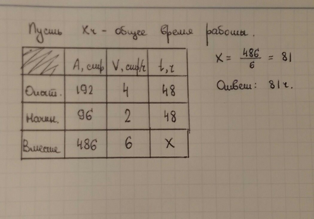 опытный оператор за 48 часов набирает на компьютере 192 страницы, а начинающий - 96 страниц. За сколько часов они наберут 486 страниц, работая вместе