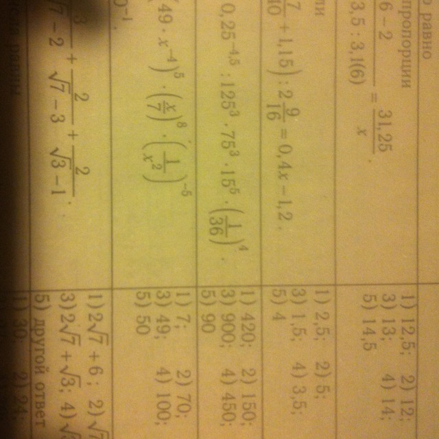 =(frac{1}{4})^{-4,5}:5^9*(5^6*3^3)*(5^5*3^5)*(frac{1}{2^8}*frac{1}{3^8})=\\=frac{2^9}{5^9}*5^{11}*3^8*(frac{1}{2^8}*frac{1}{3^8})=frac{2^9*3^8*5^{11}}{2^8*3^8*5^{9}}=50