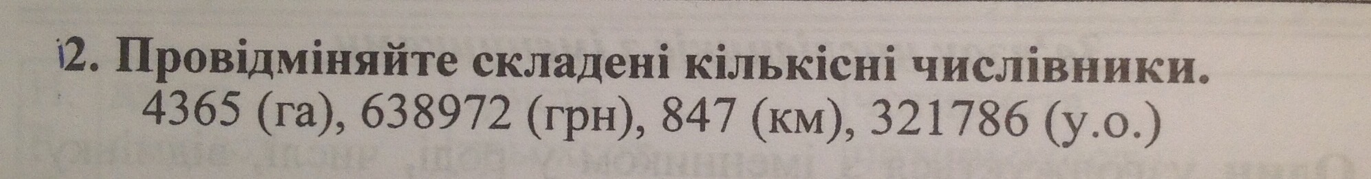 О.чотирма тисячами триста шістдесятьма п'ятьма(га); шістиста тридцяти восьмома тисячами дев'ятиста сімдесяти двома(грн);