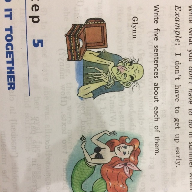There's a green man.He has a big nose.His name is a Glynn.He has got a long fingers and a short neck.He has got a long ears.He has got a wery few hears.And he has a egg.