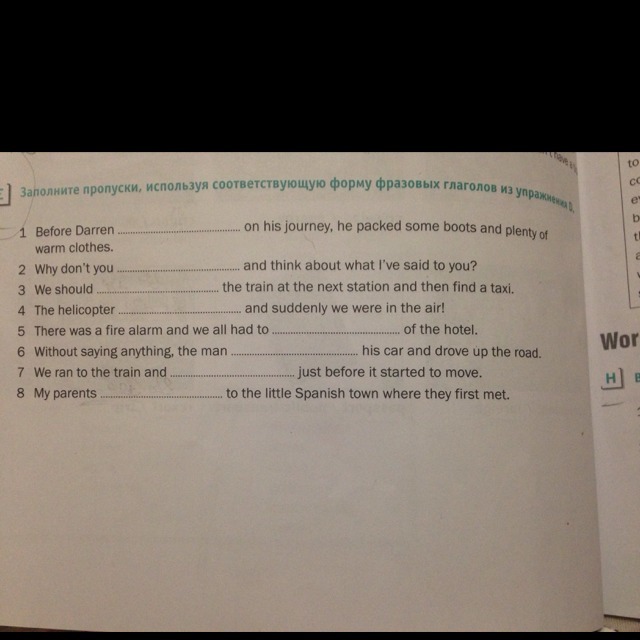 в 5 я сам придумал глагол, не из списка, но он там должен быть. 8 пропусков и 7 в списке, его там не хватало.