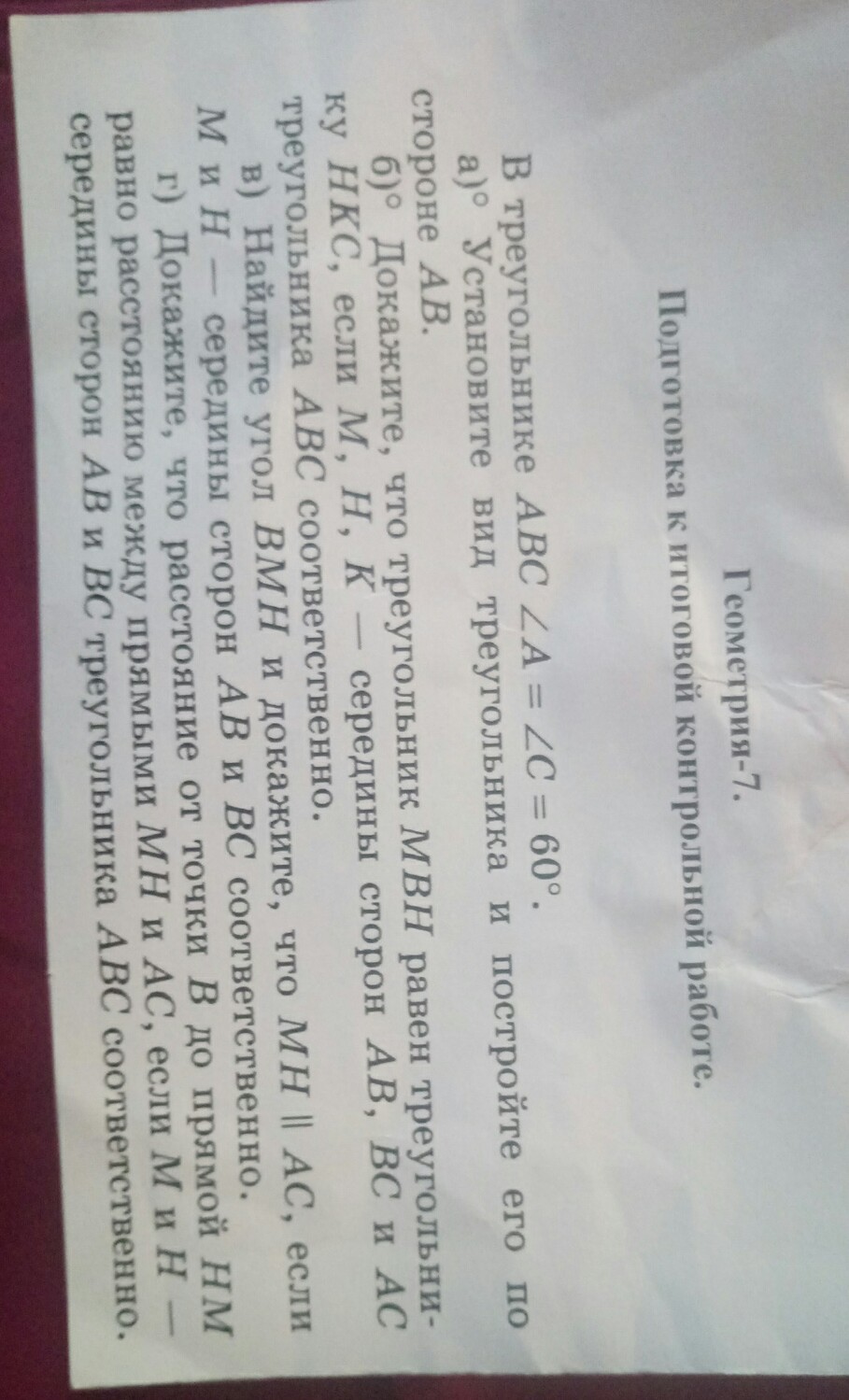 а)° два угла равны по условию... третий вычисляется: 180° - 2*60° = 60°