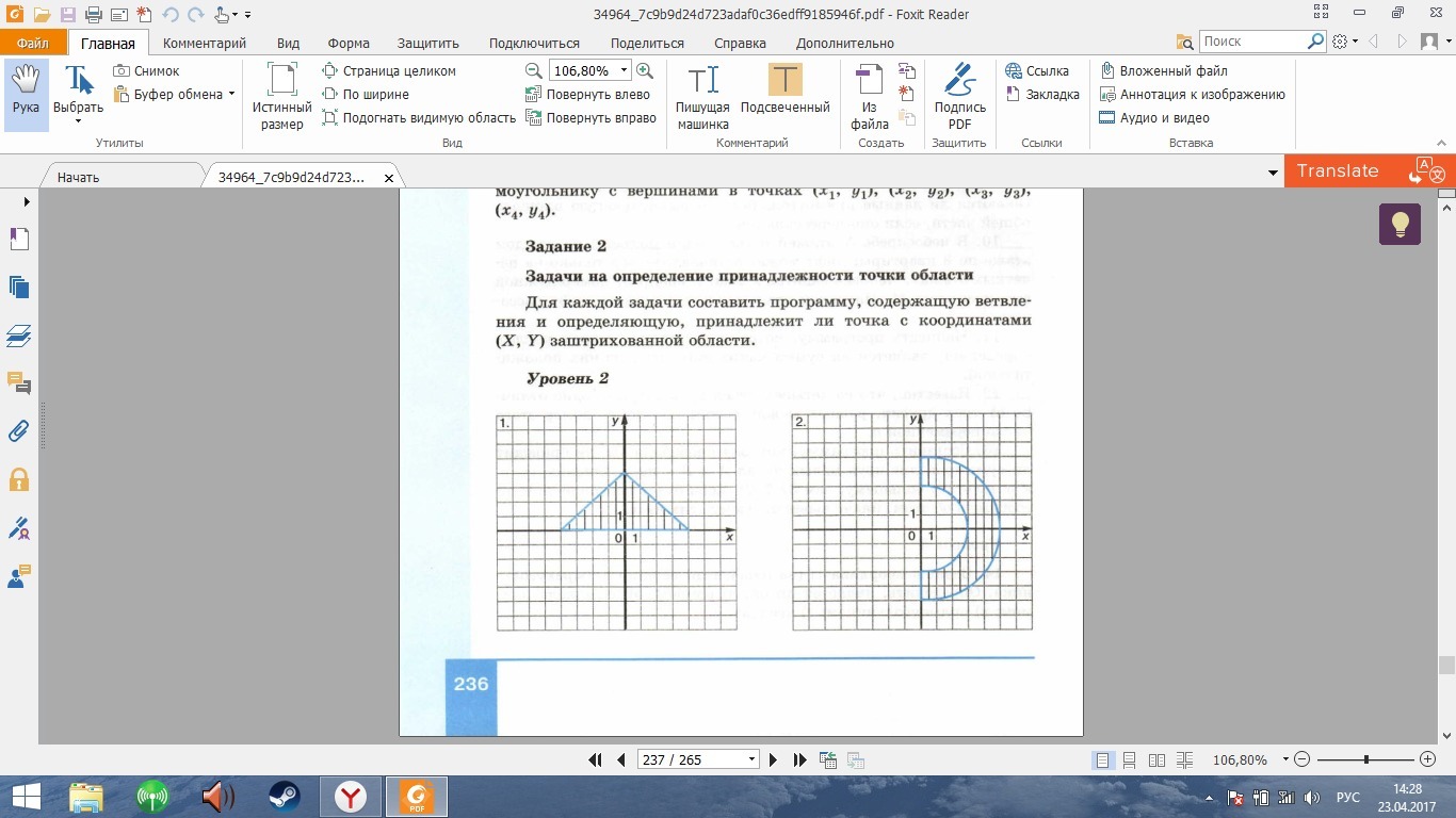 if (x*x+y*y>=3*3)and(x*x+y*y<=5*5)and(x>=0)