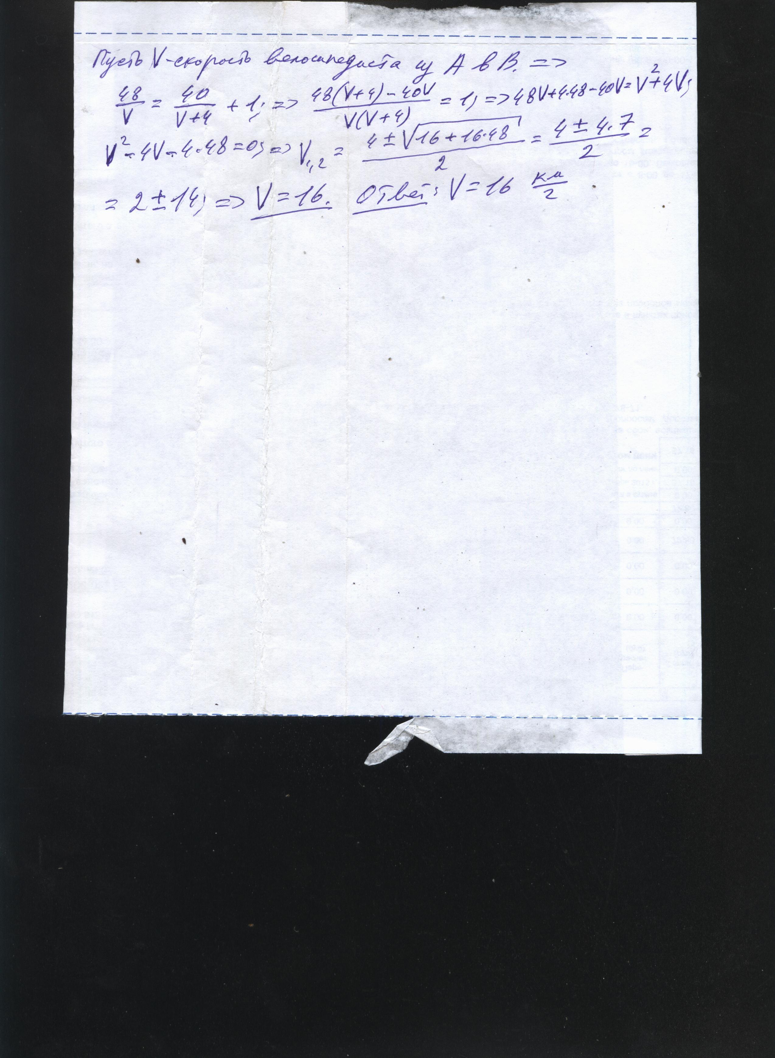 з пункту А до пункту В велосипедист проїхав по дорозі завдовшки 48 км, а повертався по іншій дорозі, яка коротша першою на 8 км. збільшивши по дорозі назад швидкість на 4 км/год, велосипедист витратив часу на 1 годину менше ніж на шлях з А до В. з якою швидкістю їхав велосипедист з А до В?