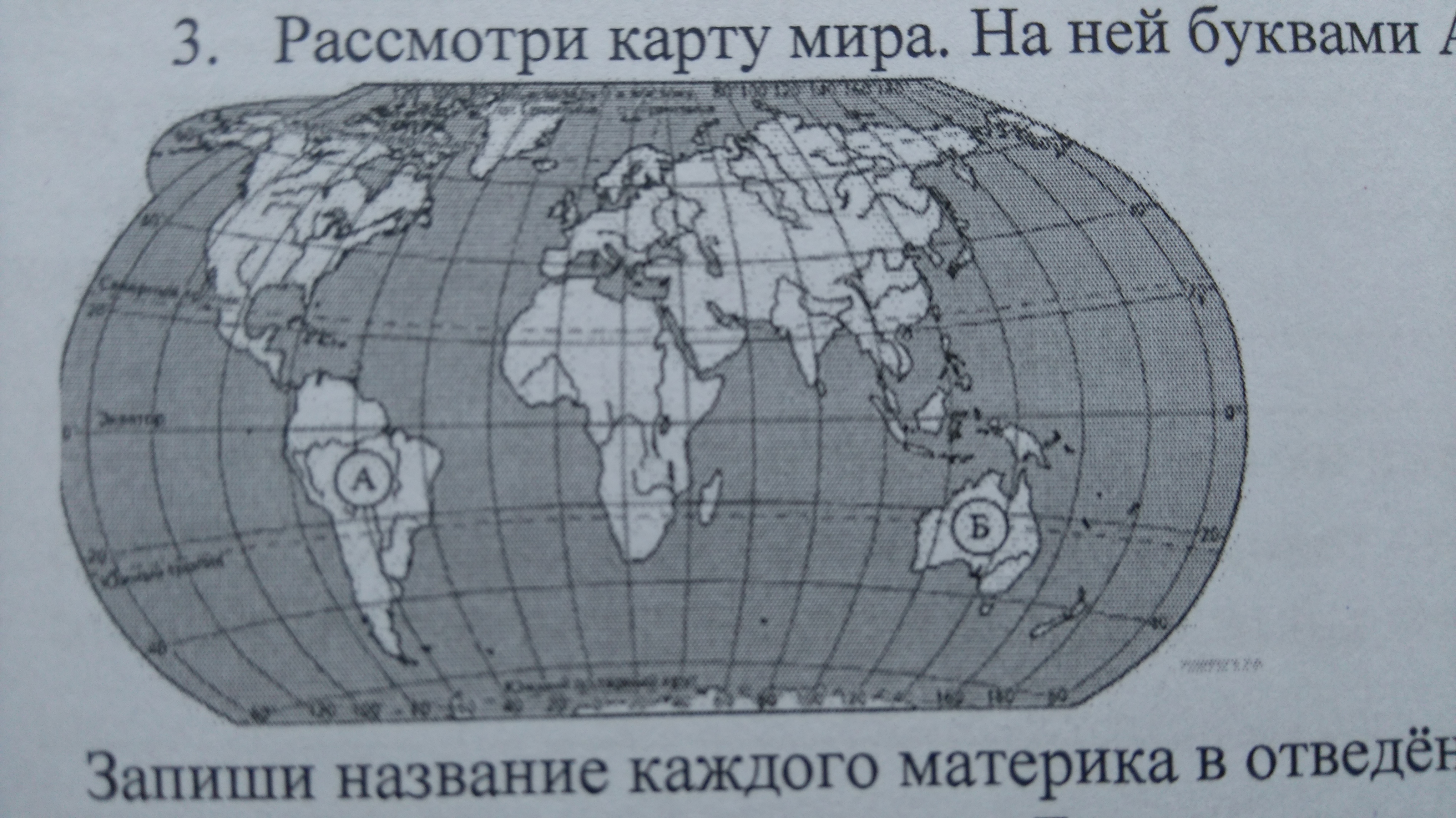Рассмотри карту мира. На ней буквами А и Б отмечены два материка.