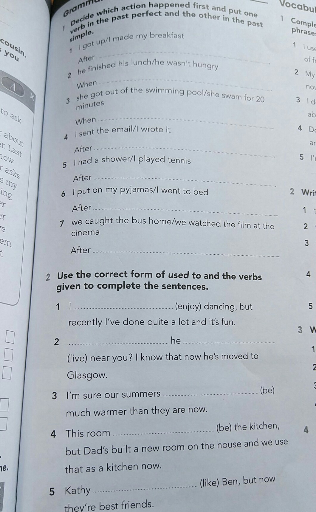 After we had watched the film at the cinema,we caught the bus home. #2 I didn't use to enjoy..., Did he use to live..., Used to be, Used to be, Didn't use to like .