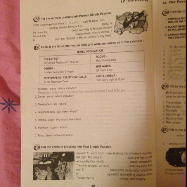 158. 2. were called; 3. was caught; 3. was found; 4. were taken; 5. were questioned; 6. were charged