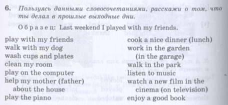 Просто сначала предложения ставишь last weekend потом третья форма глагола либо окончание ed затем продолжение предложения