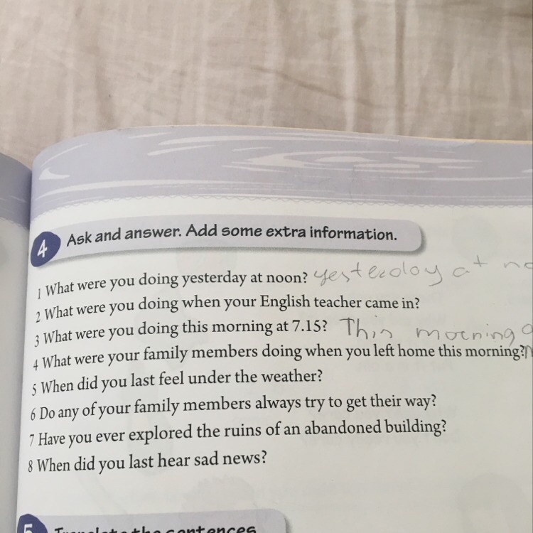 4.My grandmother was sleeping, my mother was having a breakfast, when I left home this morning.