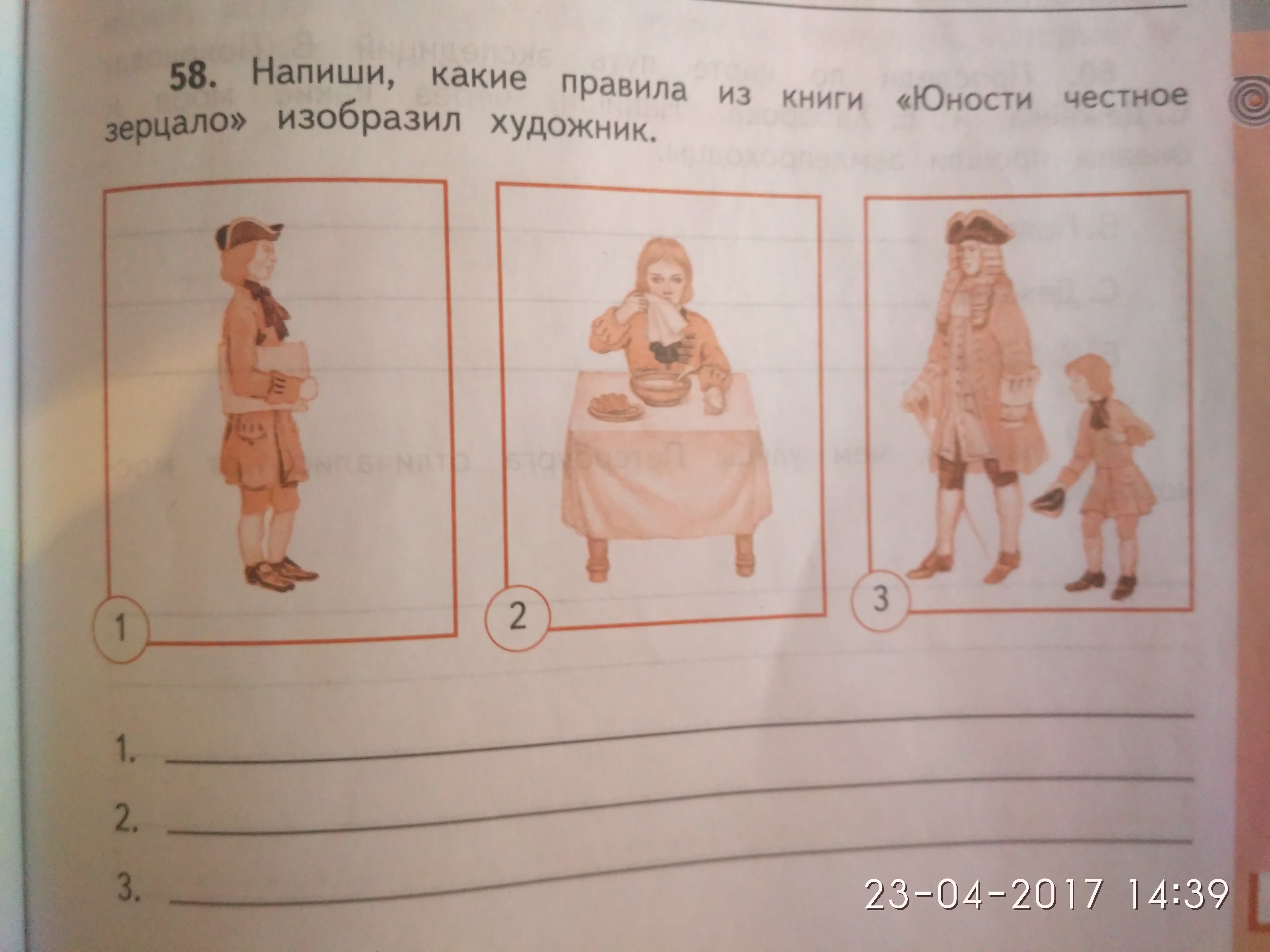 например прилежность1,2.вытераться-за столом солфеткой чтобы быть чистым после обеда. 3. Снимать шлябу когда с кем-то из взрослых (втречаешся,здавроваешся)
