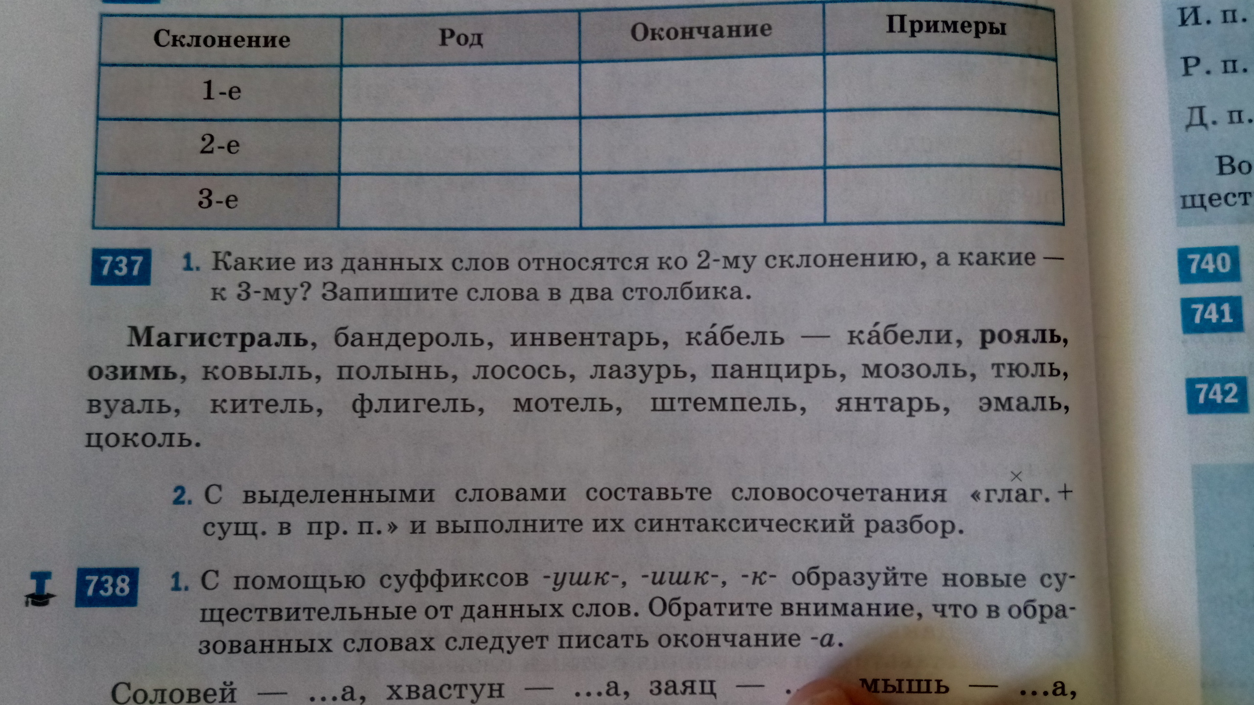 2 склонение: Инвентарь, кабель-кабели, рояль, ковыль, лосось, панцирь, тюль, китель, флигель, мотель, штемпель, янтарь, цоколь.
