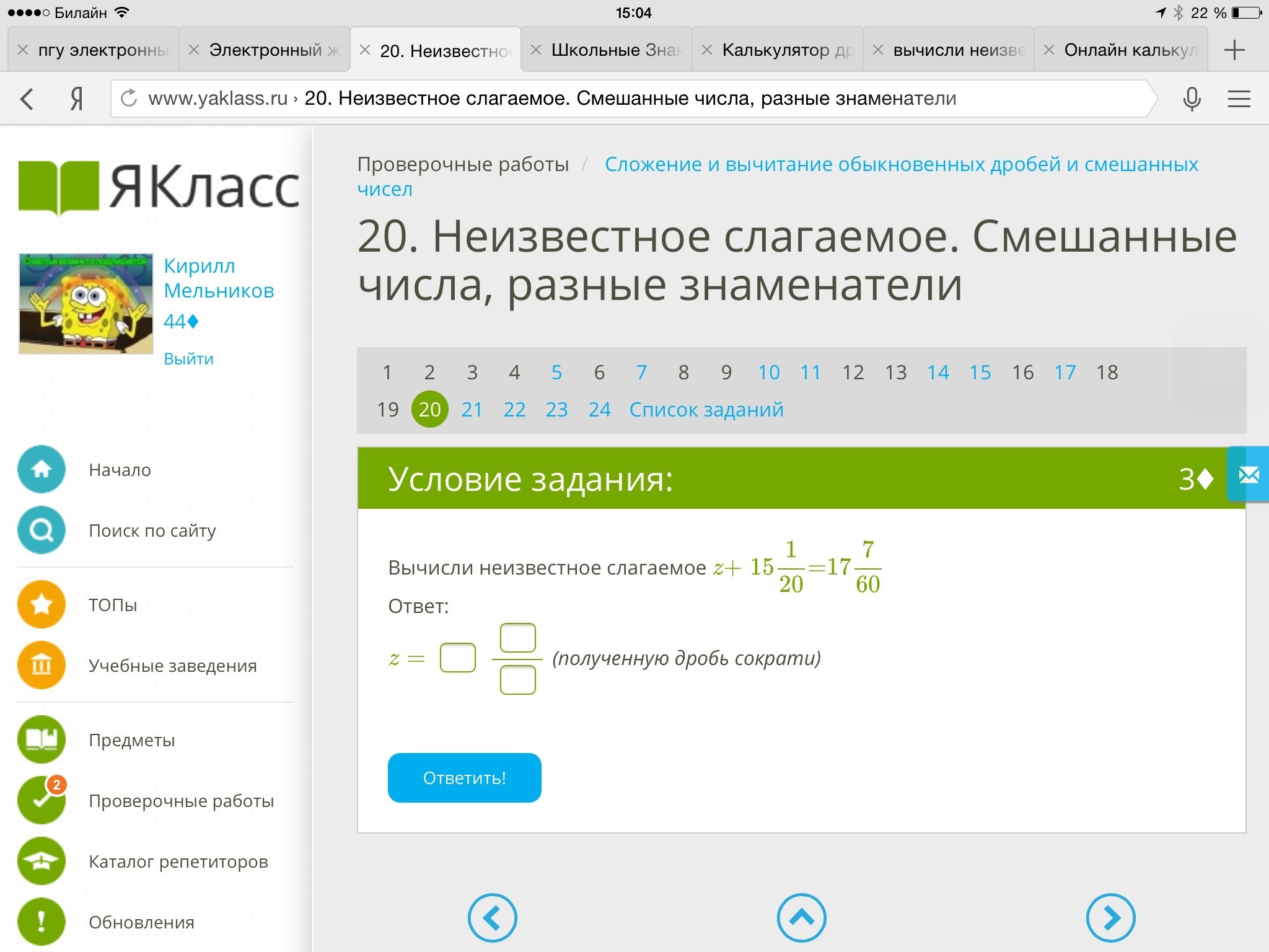 20 - 2 целых 1/15;