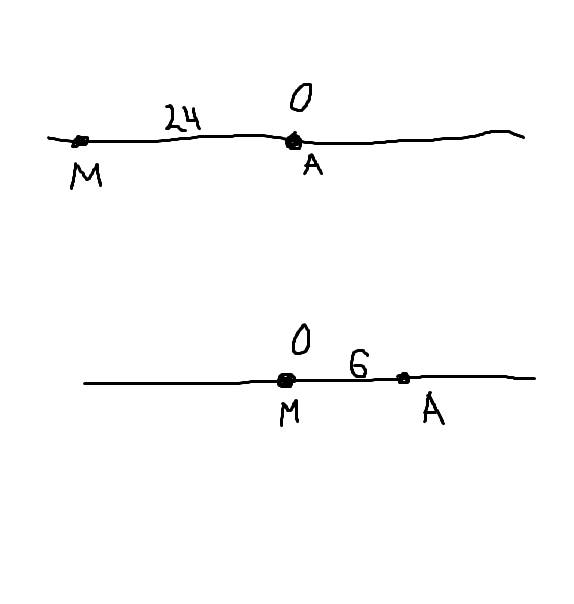 Перефразируем, когда автомобиль находился в точке О, мотоцикл отставал от него на 24км. Когда мотоцикл доехал до точки О, автомобиль был впереди него на 6км. Найти расстояние между точкой О и автомобилем в тот момент когда мотоциклист его догонит.