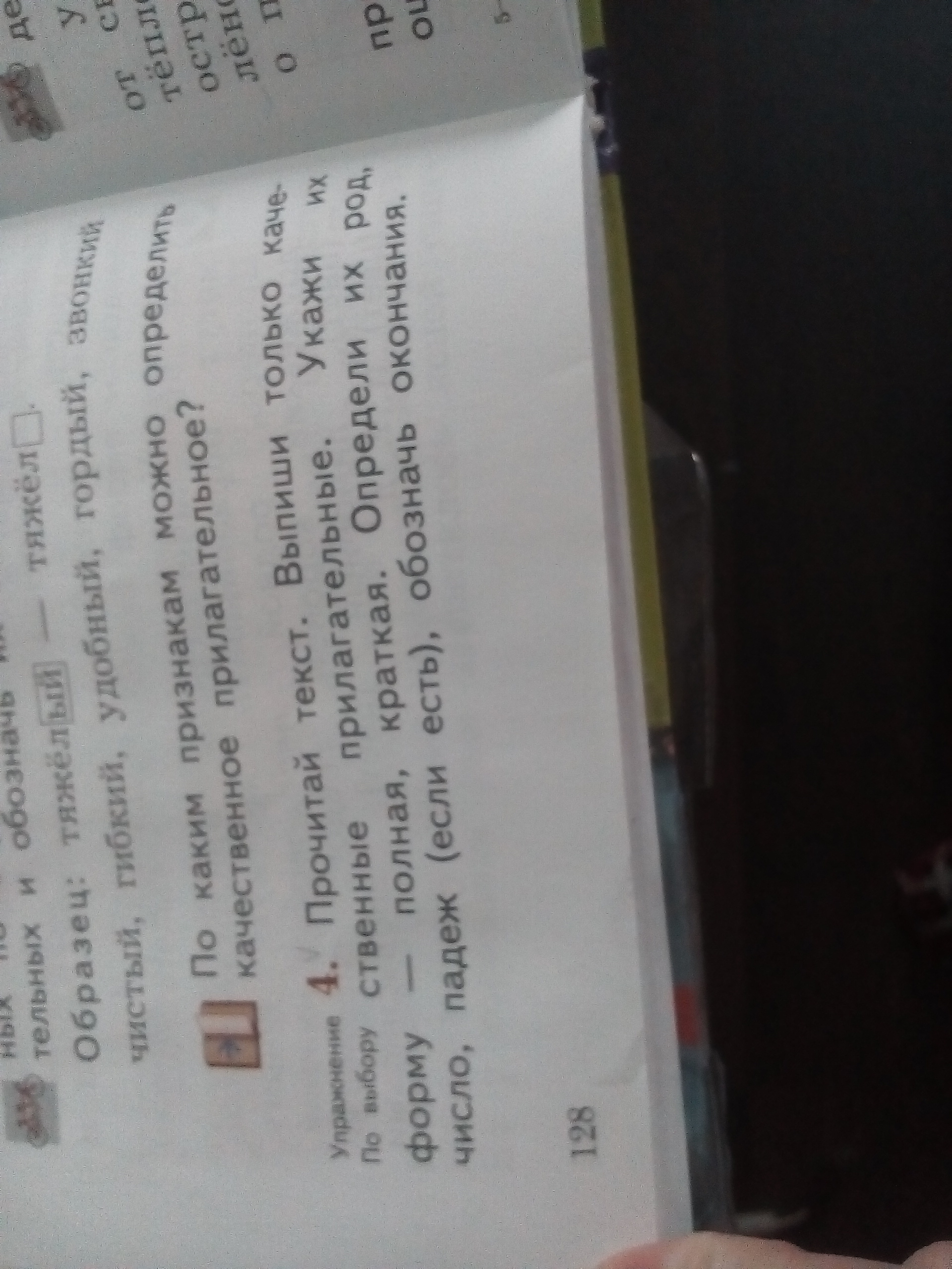 Кач. прил. выписали, падеж, род, число+по заданию-указали