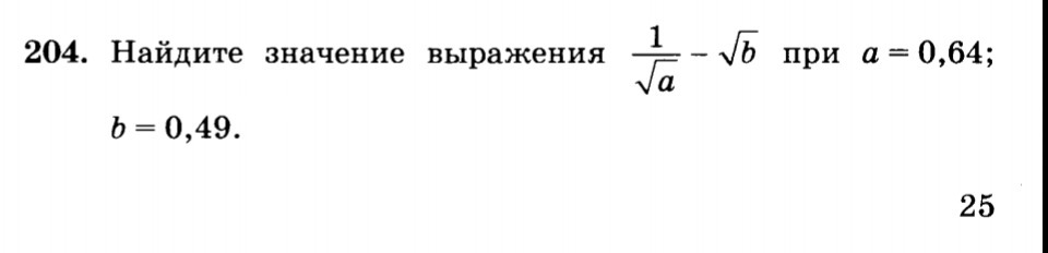 1/ корень из а - корень из b=1:0,8-0,7=1:8/10-7/10=1*10/8-7/10=1*5/4-7/10=11/20